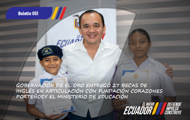 GOBERNACIÓN DE EL ORO ENTREGÓ 27 BECAS DE INGLÉS EN ARTICULACIÓN CON FUNDACIÓN CORAZONES PORTEÑOS Y EL MINISTERIO DE EDUCACIÓN