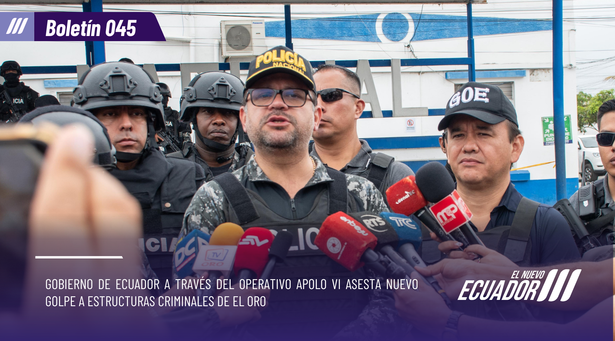 Machala, El Oro.- Machala, El Oro.- Siguiendo las directrices del presidente Daniel Noboa Azin y el compromiso del Gobierno Nacional por recuperar la paz y la seguridad de todos los ecuatorianos, el Ministerio del Interior, a través de la Policía Nacional, y el articulación con la Gobernación de El Oro ejecutó con éxito el Operativo Apolo VI en El Oro, logrando un importante golpe a las estructuras del crimen organizado que operaban en la zona.